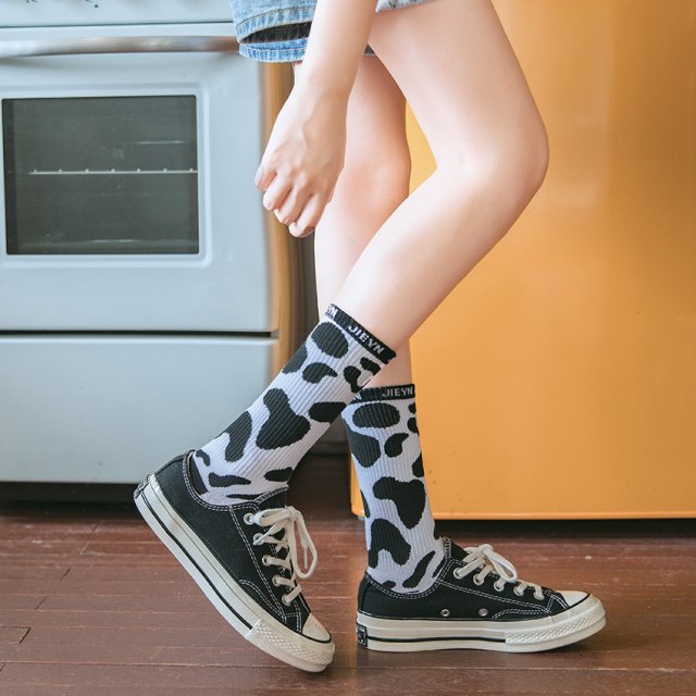 Cute Harajuku Cow Print Socks for Women – Japanese Style